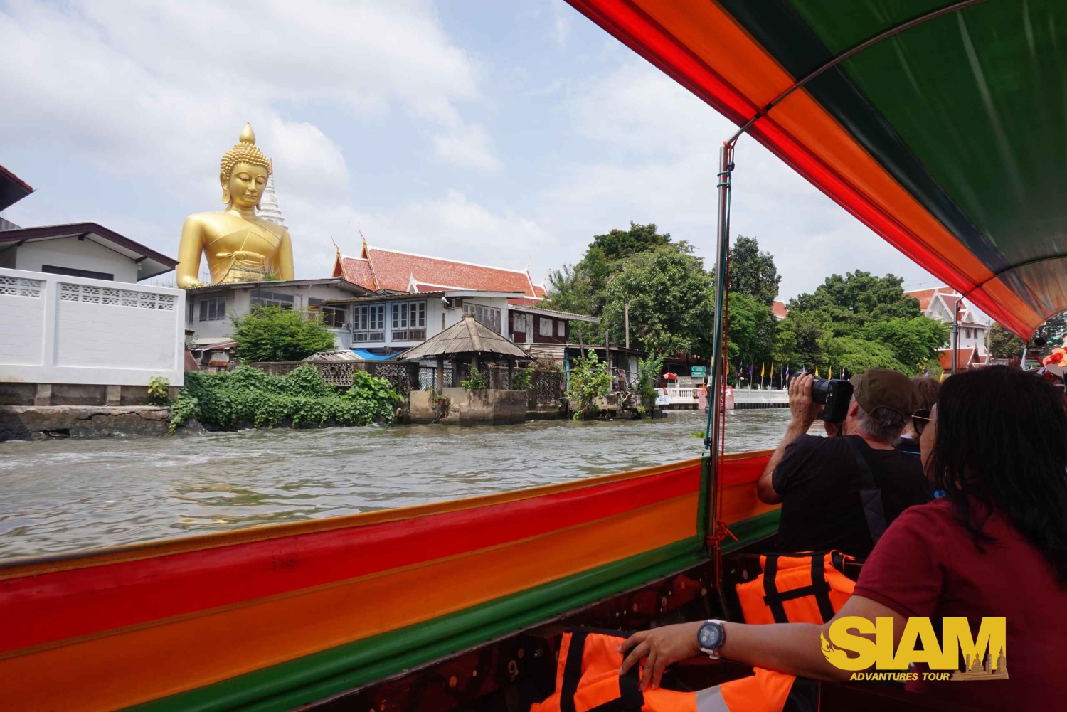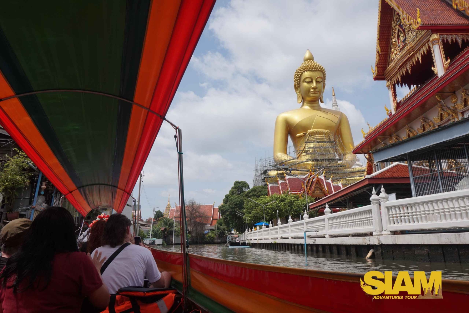 Twoja podróż rozpocznie się na stacji MRT Sanam Chai, gdzie wejdziesz na pokład tradycyjnej łodzi z długim ogonem. Wpłyń na spokojne kanały i zostaw za sobą zgiełk miasta, doświadczając Bangkoku z zupełnie innej perspektywy. Pierwszym punktem programu jest imponująca świątynia Wat Paknam Phasi Charoen, w której znajduje się jeden z najwyższych złotych posągów Buddy w Bangkoku. Ta strzelista figura majestatycznie wznosi się nad okolicą, stanowiąc obowiązkowy punkt programu. Przed kontynuowaniem podróży będziecie mieli okazję zwiedzić spokojny teren świątyni. Płynąc dalej wzdłuż Khlong Bang Luang i Khlong Mon, będziecie mogli obserwować codzienne życie nad rzeką — tradycyjne drewniane domy, małe świątynie i przyjaznych mieszkańców zajmujących się swoimi codziennymi sprawami. Ta część Bangkoku sprawia wrażenie, jakbyście cofnęli się w czasie, oferując rzadki wgląd w dziedzictwo miasta. Następnie miniesz Dom Artysty (Baan Silapin), skarb kultury ukryty nad kanałem. Ten wielowiekowy drewniany dom jest obecnie tętniącą życiem przestrzenią artystyczną pełną murali, rękodzieła i twórczej energii. Znajdź chwilę, aby się zrelaksować, nakarmić ryby przekąskami, które zapewniamy, i rozkoszować się wyjątkowym połączeniem historii i sztuki. ✨ Opcjonalna atrakcja (tylko w weekendy i podczas wycieczek prywatnych): podczas wybranych wycieczek możesz dodać wizytę na pływającym targu Khlong Lat Mayom, jednym z najbardziej autentycznych i przyjaznych targów w Bangkoku. Przeglądaj kolorowe stragany pełne świeżych owoców, ulicznego jedzenia i ręcznie robionych wyrobów lub delektuj się pysznymi tajskimi potrawami przygotowywanymi bezpośrednio na łodziach. To prawdziwa atrakcja dla miłośników jedzenia i kultury! Po zakończeniu wycieczki zrelaksuj się podczas powrotnej podróży kanałami, podziwiając ukryte zakątki miasta. Niezależnie od tego, czy jesteś parą, rodziną, czy ciekawskim odkrywcą, ta wycieczka to idealny sposób na poznanie spokojniejszej, bardziej tradycyjnej strony Bangkoku.Includes