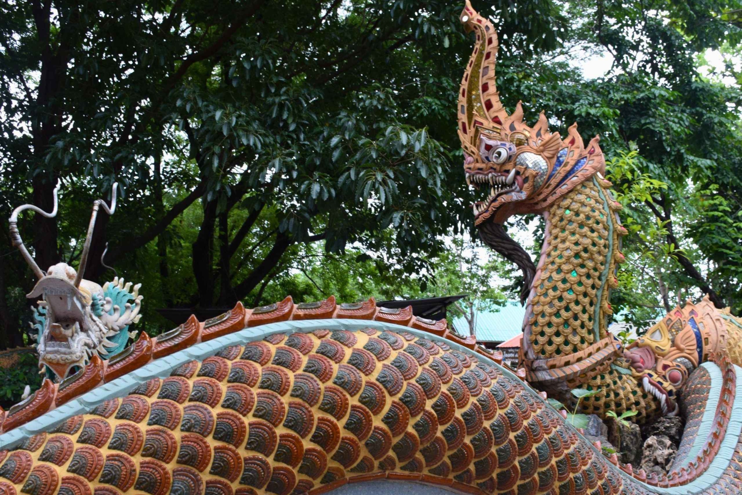 Uchwyć niezapomniane chwile podczas tej jednodniowej fotograficznej podróży łączącej kolory, kulturę i surrealistyczne piękno. Ta wycieczka Lens Edition, dostosowana do potrzeb wizualnych narratorów, zabierze cię z tętniących życiem targowisk do kultowych świątyń, a zakończy zapierającym dech w piersiach festiwalem światła. Wat Samphran (Świątynia Smoka) To surrealistyczne arcydzieło, czerwono-różowa wieża otoczona ogromnym smokiem, oferuje dramatyczne szerokie ujęcia, szczegółowe tekstury i niezapomnianą panoramę z głowy smoka. Miejsce, które koniecznie trzeba sfotografować. Pływający targ Damnoen Saduak Płyń kajakiem po najbardziej fotogenicznym pływającym targu w Tajlandii. Uchwyć odbicia, żywe kolory produktów i życie nad brzegiem rzeki — idealne miejsce do robienia zdjęć ulicznych, portretowych i lifestyle'owych. Targ kolejowy Mae Klong Poczuj dreszczyk emocji, gdy pociąg przejeżdża przez ten targ na torach. Poćwicz wyczucie czasu i kompozycję, gdy stragany w magiczny sposób się składają i ponownie otwierają — to kultowy moment fotograficzny, którego nie chcesz przegapić. Festiwal Świateł Na Satta Gdy złota godzina dobiega końca, wybierz się do świecącej krainy czarów w parku Na Satta. Dzięki bajecznym instalacjom, podświetlonym rzeźbom i replikom świątyń skąpanych w kolorach, ta nocna sesja pozwala bawić się światłem, długim czasem naświetlania i magicznym opowiadaniem historii. Powrót do BangkokuIncludes