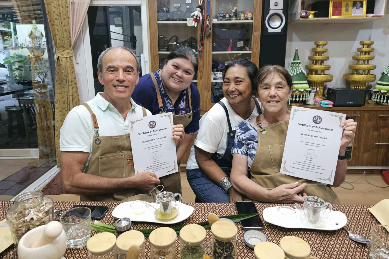 Rozpocznij swoją przygodę z tajską kuchnią o 14:00 przy stacji MRT Huai Khwang, wyjście 4, gdzie spotkasz się ze swoim przyjaznym instruktorem mówiącym po niemiecku. Twoja podróż zaczyna się od krótkiej wizyty kulturalnej w Sanktuarium Ganeszy, a następnie zwiedzania z przewodnikiem targu Huai Khwang, słynącego z kolorowych straganów z ziołami, przyprawami i tropikalnymi produktami – podstawą autentycznej kuchni tajskiej. Po targu dojedziesz lokalnym transportem lub tuk-tukiem do naszego przytulnego studia kulinarnego Uncle & Aunty House, gdzie powitamy Cię uśmiechem i herbatą ziołową. Zanim zaczniesz gotować, naucz się robić mleko kokosowe i pastę curry od podstaw, używając tradycyjnych tajskich narzędzi, takich jak moździerz i tłuczek. W małej grupie, maksymalnie sześciu uczestników, razem przygotujecie cztery do pięciu klasycznych tajskich dań – zazwyczaj obejmujących curry, danie smażone, zupę lub sałatkę oraz deser. Zawsze dostępne są opcje wegetariańskie i wegańskie. Tygodniowe menu lekcji tajskiej kuchni w Bangkoku W Uncle & Aunty House każdego dnia znajdziesz inne menu, które jest główną atrakcją różnorodności tajskiej kuchni. Wszystkie dania przygotowujemy od podstaw, używając świeżych lokalnych składników i tradycyjnych metod. Poniedziałek – Curry Panang z wołowiną – Smażone na czerwonym ogniu poranne chwały – Jajka gotowane – Smażony kurczak z ziołami – Gotowane przekąski (Khanom Tom) Wtorek – Tajska zupa kokosowa z kurczakiem (Tom Kha Gai) – Tofu smażone z kiełkami fasoli – Smażona wieprzowina z ziołami – Smażony ryż – Ciasto warstwowe z pandanem gotowane na parze Środa – Gorąca i kwaśna zupa z krewetkami i warzywami – Kurczak smażony z bazylią azjatycką – Tajski omlet – Smażony makaron po tajsku – Deser z mleka kokosowego gotowany na parze (Khanom Tuay) Czwartek – Smażone pędy bambusa z pastą curry – Zupa z tofu – Boczek wieprzowy smażony w głębokim tłuszczu z ziołami – Smażony makaron po chińsku – Ciasto bananowe na parze Piątek – Zielone curry z kurczakiem – Jarmuż smażony z soloną rybą – Kurczak smażony z czosnkiem i pieprzem – Makaron ryżowy smażony w sosie sojowym – Miękki naleśnik z fasoli mung Sobota – Sałatka z papai (Som Tam) – Pikantna sałatka z mielonej wieprzowiny (Larb) – Gorąca i pikantna zupa – Smażony kurczak z tajskimi ziołami – Banan w mleku kokosowym Niedziela – Pikantna zupa z kurczaka (Tom Yum Gai) – Kapusta napa smażona na patelni – Wołowina smażona z czerwoną pastą curry – Makaron ryżowy z kurczakiem, smażony na patelni – Gotowana dynia w mleku kokosowym Gdy dania będą gotowe, delektujcie się razem świeżo przyrządzonym tajskim posiłkiem – to świetna okazja, by podzielić się opowieściami, śmiechem i pysznymi smakami. Na koniec zajęć wypijesz filiżankę herbaty ziołowej i otrzymasz certyfikat ukończenia kursu, co sprawi, że Twoje doświadczenie będzie naprawdę kompletne. Wróć do MRT Huai Khwang około 19:00, zabierając ze sobą nie tylko przepisy, ale też nowe umiejętności kulinarne i ciepłe wspomnienia tajskiej gościnności.Includes