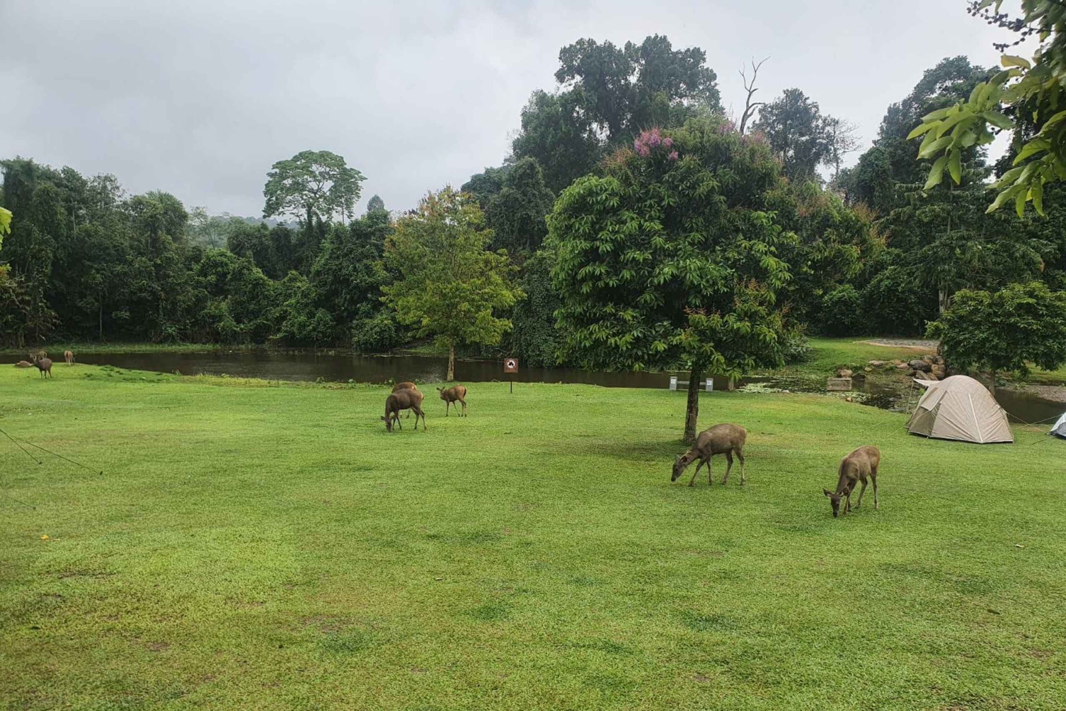 Comece a sua aventura com uma caminhada panorâmica pela trilha Nong Phak Chi, onde poderá avistar animais selvagens no seu habitat natural e apreciar vistas deslumbrantes da floresta. Desfrute de um almoço na cantina do parque (por conta própria) antes de visitar duas das icónicas cascatas de Khao Yai: a pitoresca Haew Suwat, que ficou famosa pelo filme A Praia, e a dramática Haew Narok, a maior cascata do parque. Termine o seu retiro visitando o acampamento Lamtakong, onde poderá avistar e fotografar veados selvagens amigáveis. Desfrute do conforto de um veículo privado com ar condicionado e serviço de busca no hotel, e da conveniência de um programa pré-organizado, que lhe dá a liberdade de explorar cada destino com segurança.Includes