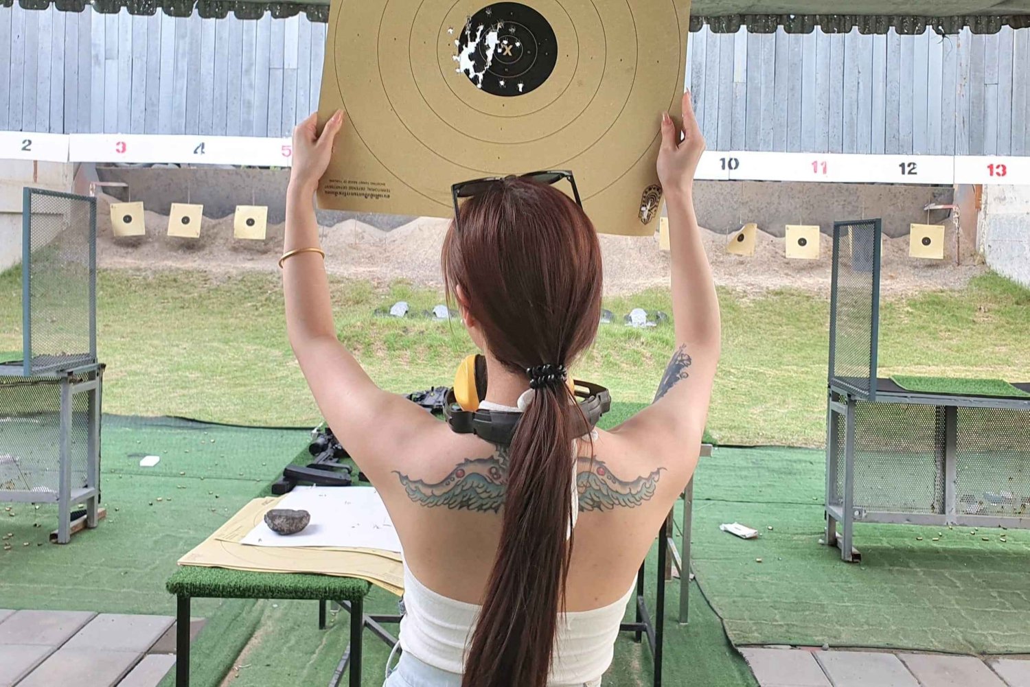 Campo de Tiro de Defesa Territorial A poucos passos do Grande Palácio e do Wat Phra Kaew, este campo de tiro coberto e gerido por profissionais é ideal tanto para iniciantes quanto para atiradores experientes. Ao chegar, você receberá instruções de segurança completas e orientações personalizadas de uma equipe especializada, que irá guiá-lo em cada etapa do processo. Aprenda a segurar, mirar e disparar armas de fogo reais de maneira adequada em um ambiente seguro e controlado, garantindo segurança e emoção durante toda a experiência.Includes
