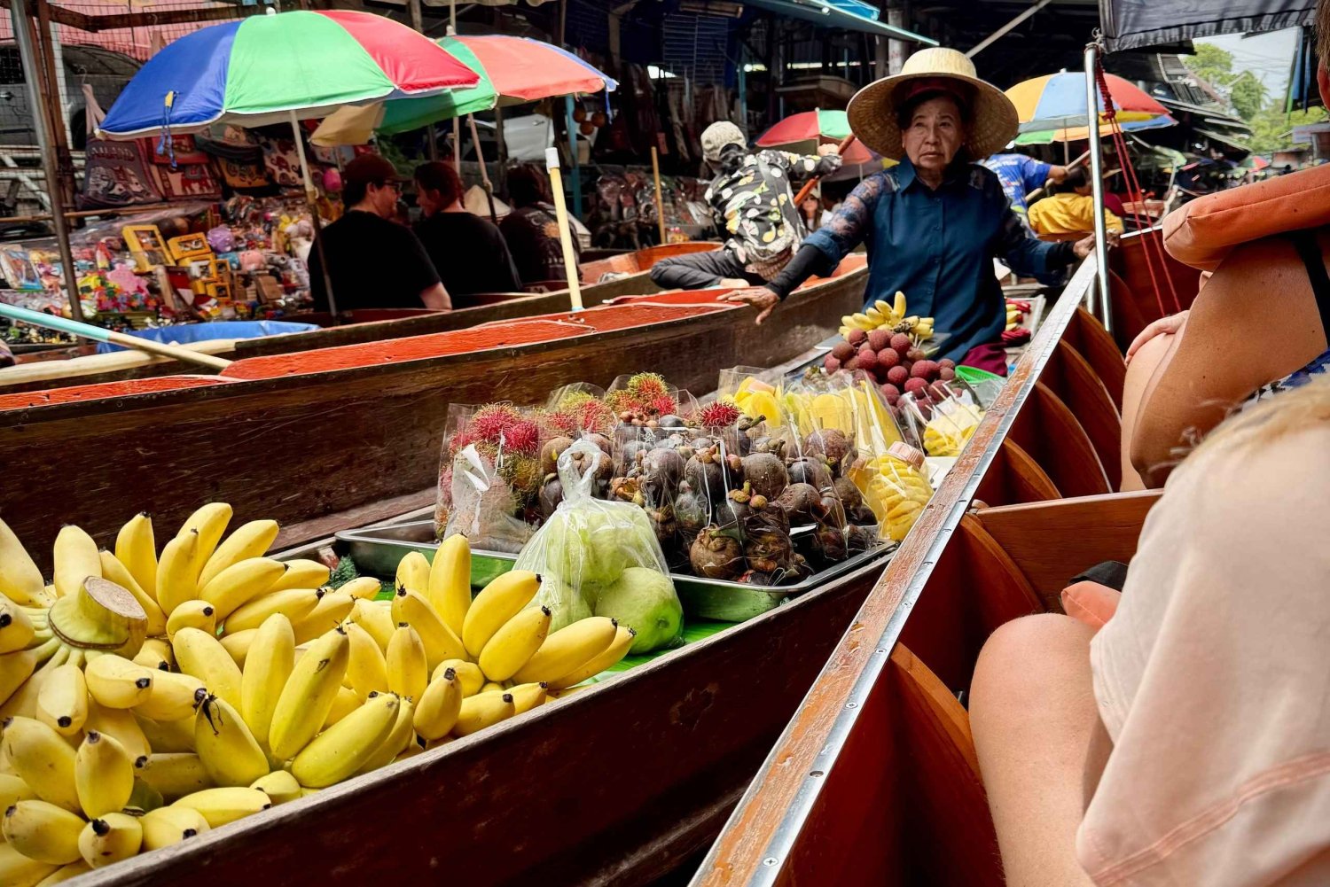 Desfruta da tua viagem privada enquanto exploras dois dos mercados mais emblemáticos da Tailândia, o vibrante Mercado Flutuante de Damnoen Saduak e o famoso Mercado Ferroviário de Maeklong. Com o teu guia e veÃculo privados, vais viajar com conforto, sem o incómodo de partilhar com estranhos. As descrições em áudio em 28 idiomas vão enriquecer a tua experiência com informações significativas sobre a cultura tailandesa. Embarque num comboio local encantador e aprecie as vistas da Tailândia rural a caminho do único Mercado Ferroviário de Maeklong. Testemunhe o momento emocionante em que um comboio atravessa as barracas do mercado movimentado, uma cena como nenhuma outra. Depois, relaxe num barco particular de cauda longa enquanto desliza pelos canais para chegar ao mundialmente famoso Mercado Flutuante de Damnoen Saduak. Mergulhe nas cores, sons e aromas deste animado centro flutuante, onde os barcos transbordam de frutas, lanches e lembranças. Este passeio foi pensado para o seu conforto e flexibilidade, perfeito para viajantes individuais, casais, famÃlias ou amigos. Com tudo personalizado para o seu grupo, você vai desfrutar de uma experiência tranquila, memorável e verdadeiramente pessoal.Includes