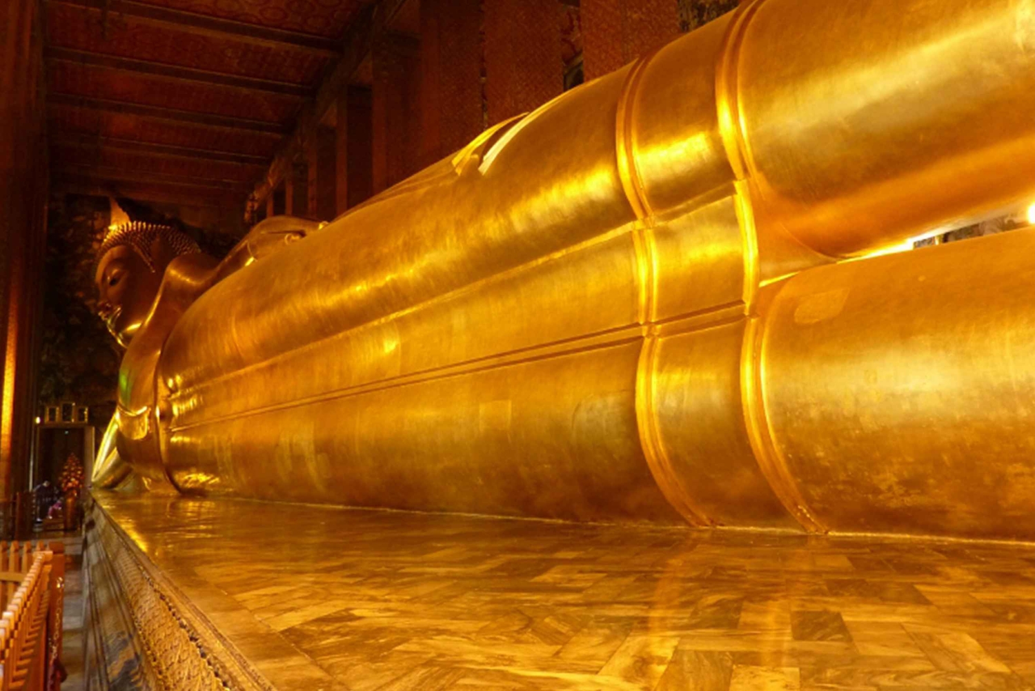 O ponto alto de visitar o Grande Palácio é ver vários tipos de edifícios deslumbrantes que foram construídos em diferentes estilos - tailandês, europeu e chinês combinados. O templo do Buda de Esmeralda é o templo mais bonito da Tailândia. Não percas a oportunidade de o ver pelo menos uma vez na vida. Depois, faz uma visita ao Templo do Buda Reclinado ou, como é chamado, Wat Pho em tailandês. Podes admirar uma imagem do Buda Reclinado com 46 metros de comprimento. Este templo também é conhecido pela sua escola de massagem tradicional tailandesa.