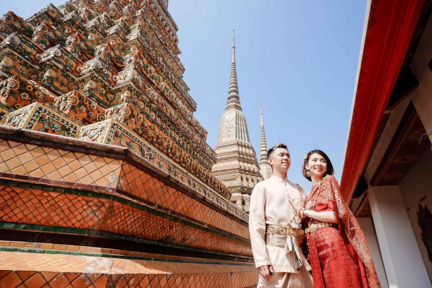 Wat Pho: Sessão fotográfica com trajes tradicionais tailandeses