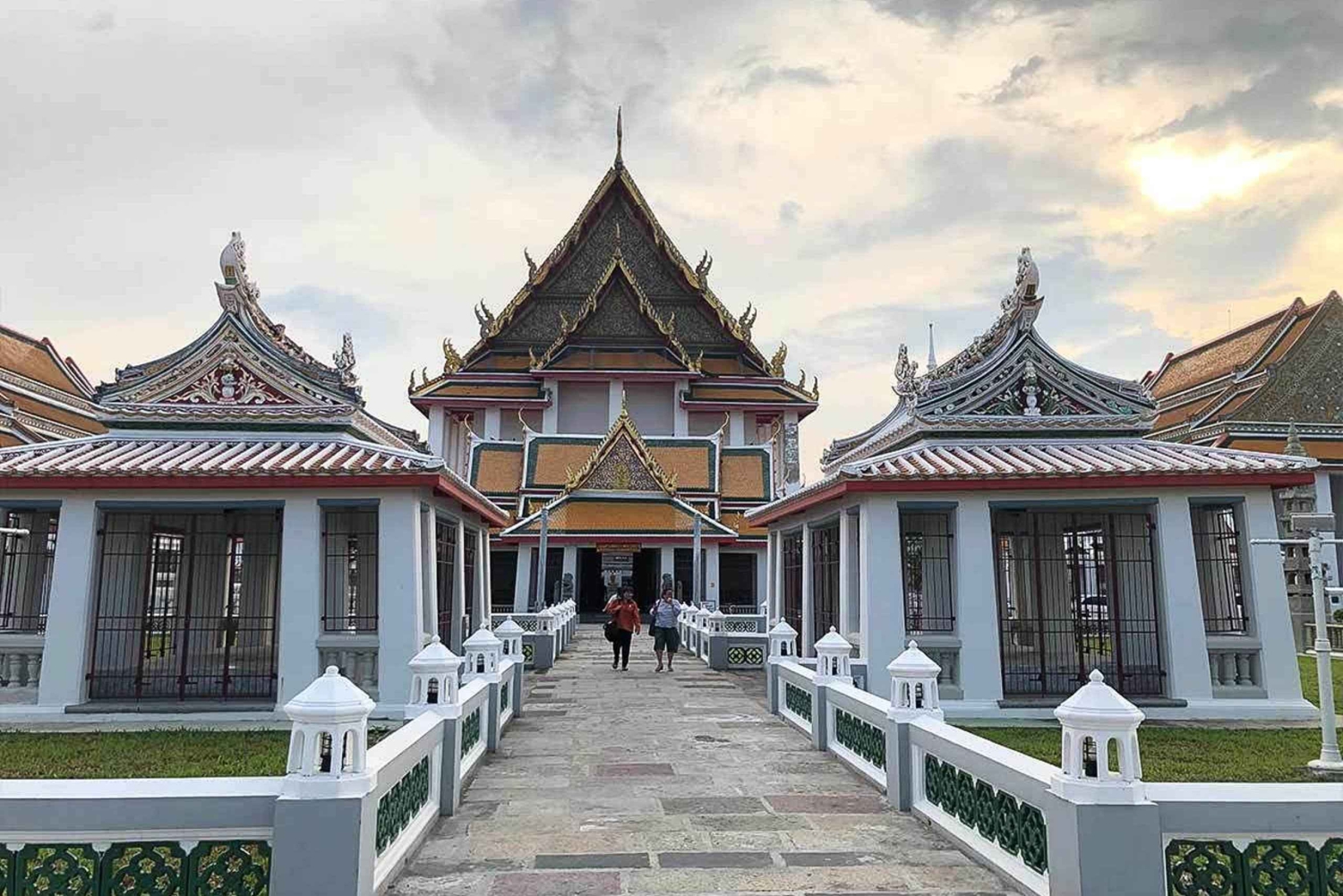 Лучшее время для осмотра старого Бангкока — вечер, когда город остывает и толп туристов становится меньше. Ваша первая остановка — цветочный рынок Пак Клонг Талад, крупнейший оптовый и розничный рынок свежих цветов в Бангкоке. Затем продолжайте путь к Ват Калайя, который был построен в 1825 году богатой тайско-китайской семьей. В этом месте вы увидите прекрасного сидящего Будду, помещенного в главную часовню, которая демонстрирует смешанные культуры тайских и иностранных влияний в архитектуре и искусстве. Продолжайте свой путь к Ват Арун, известному как храм рассвета. Поднимитесь на вершину, чтобы насладиться видом на могучую реку Чао Прайя и узнать историю этих лучших достопримечательностей Бангкока. И последнее, но не менее важное: остановитесь в баре, чтобы насладиться видом Бангкока и Ват Арун с другой стороны берега реки на фоне заката. P.S.: Между цветочным рынком и Ват Калайя ходил паром, который в настоящее время не работает. Вместо этого мы воспользуемся пешеходным маршрутом или доедем до другого берега реки на тук-туке.Includes