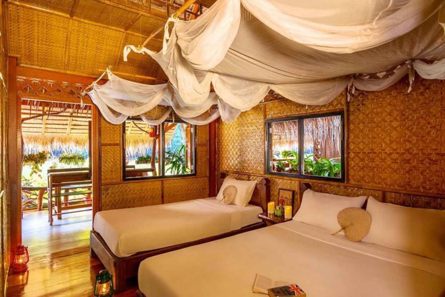 • Bo på ett romantiskt hotell med flytande bambuflottar