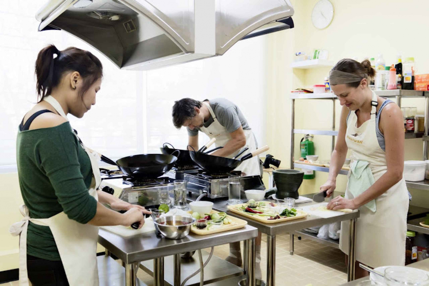 Lär dig att förbereda och laga en traditionell thailändsk måltid på en rolig och interaktiv 4-timmars matlagningskurs i Bangkok. Väck din kulinariska kreativitet, besök en lokal marknad och njut av massor av hälsosam thailändsk mat längs vägen. Varje praktisk klass består av 4 härliga recept som tillagas i en fullt utrustad arbetsyta. Få expertundervisning av en tålmodig och erfaren kock och träffa nya likasinnade matintresserade vänner. Kurserna erbjuds på morgonen eller eftermiddagen, där du får ta del av instruktörens demonstrationer och praktiska övningar. Dessa klasser har oavbrutna sessioner, så att du kan prova resultatet av dina ansträngningar i slutet av klassen. Oavsett om du väljer morgon- eller eftermiddagsturen åker du med tuk-tuk till en lokal marknad för att välja ingredienser av bästa kvalitet. Ni åker tillbaka till matlagningsskolan för en välkomstdrink och en matlagningsdemonstration. Instruktören tillagar rätterna medan du observerar. Sedan är det dags att flytta till spisarna och börja laga mat! Skapa dina rätter, med massor av hjälp och tips för att säkerställa att ditt thailändska kök är precis som det ska vara. Därefter flyttar du till matsalen och njuter av de rätter du lagat i en informell atmosfär.