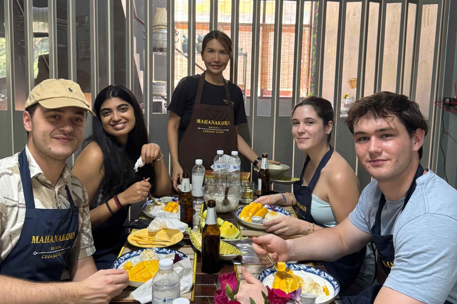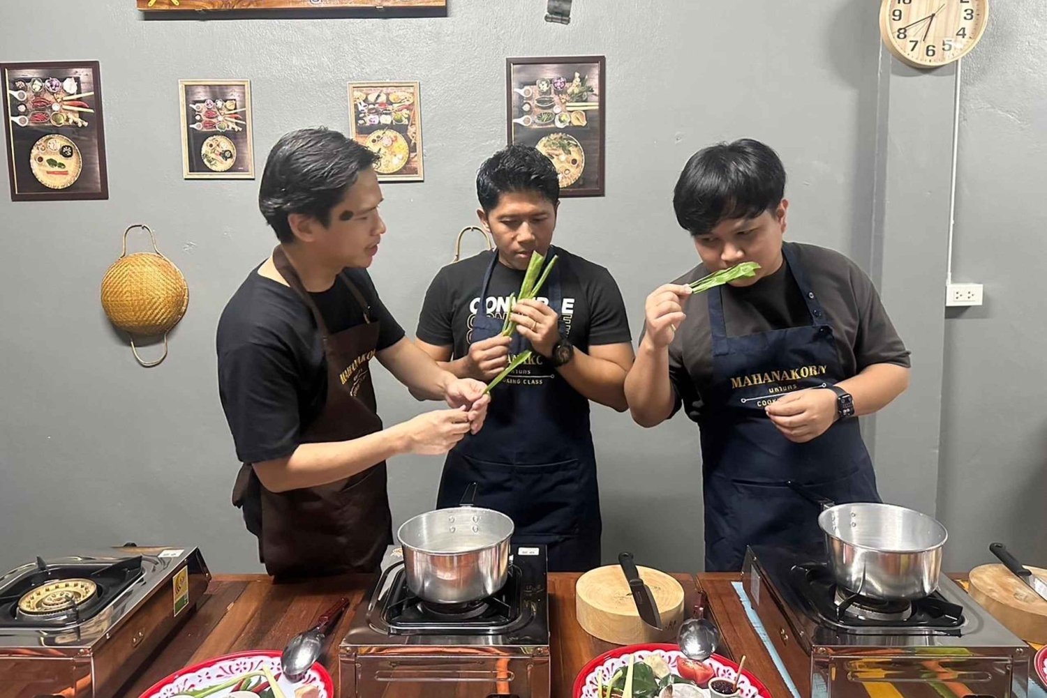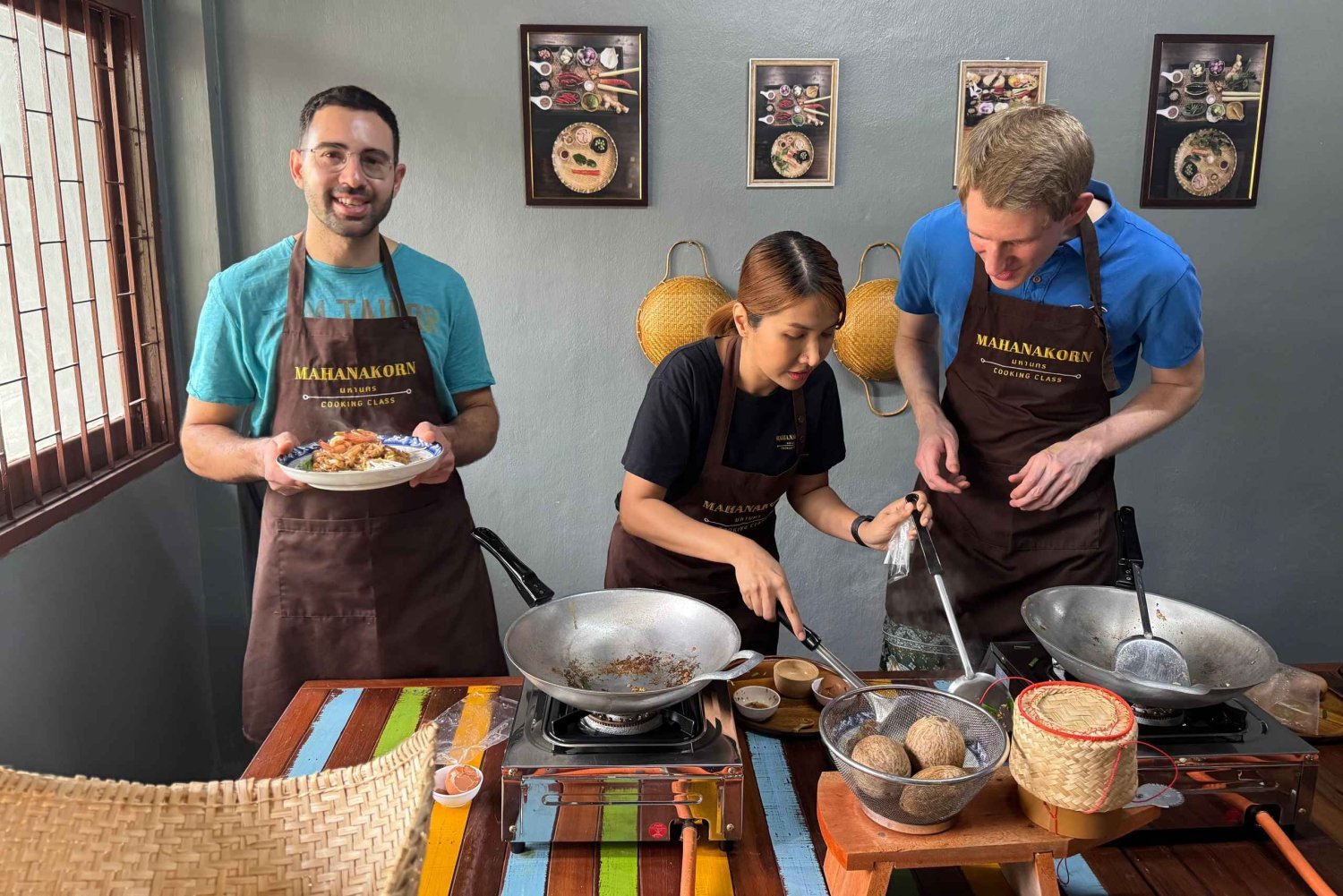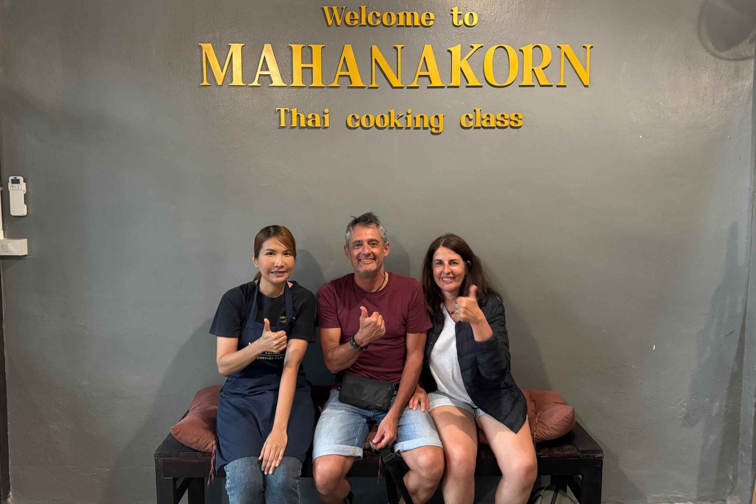 Gå med i en matlagningskurs i Bangkok och lär dig att skapa autentiska thailändska rätter med färska, lokala ingredienser. Börja på Mahanakorn Thai matlagningskurs, där du får en introduktion till de unika kryddorna och smakerna i det thailändska köket. Få praktisk erfarenhet av att laga traditionella recept under ledning av en lokal kock. Från curryrätter till wokrätter får du lära dig tekniker som framhäver Thailands livfulla och djärva smaker. Slutligen sätter ni er ner tillsammans för att njuta av den utsökta måltid ni har tillagat. Oavsett om du är nybörjare eller matentusiast erbjuder denna klass en rolig, kulturell upplevelse som ger dig nya färdigheter och en djupare uppskattning för thailändsk matlagning.Includes