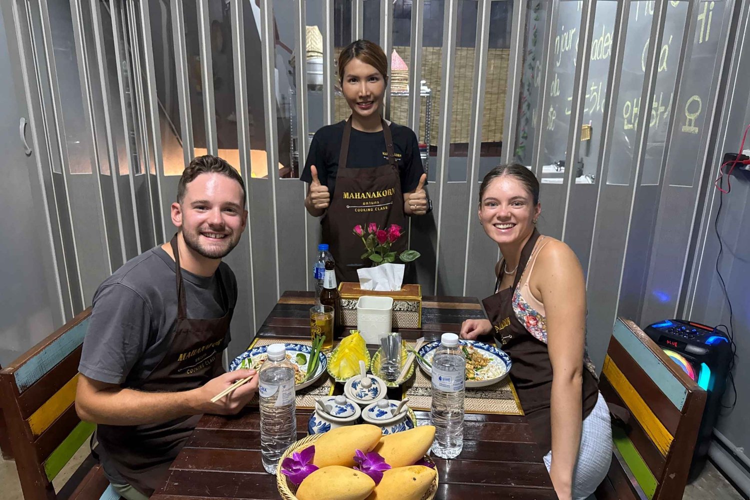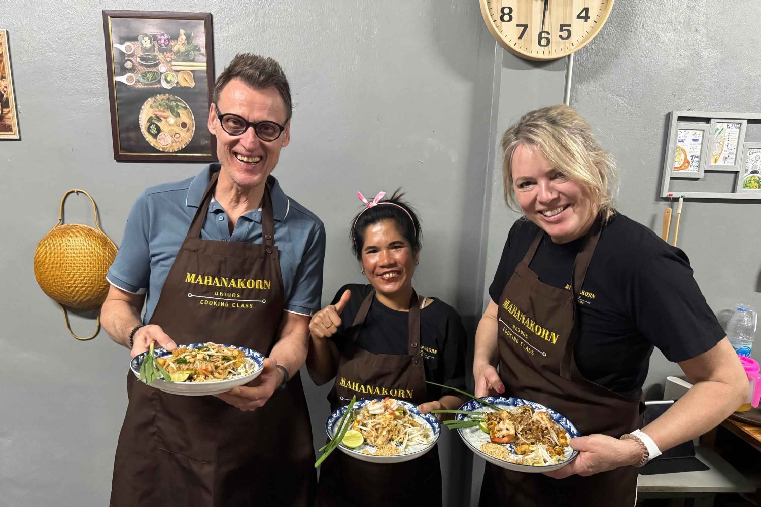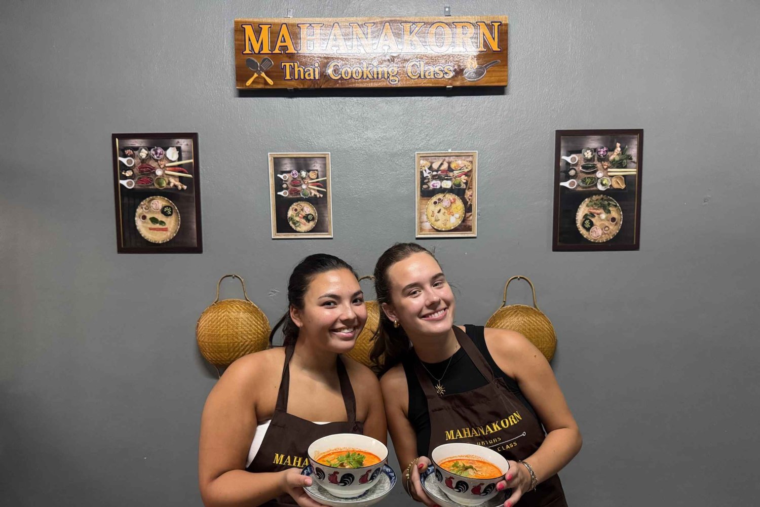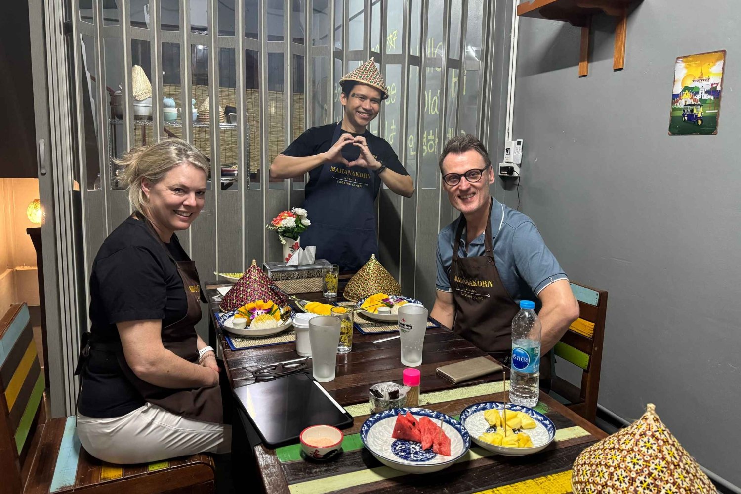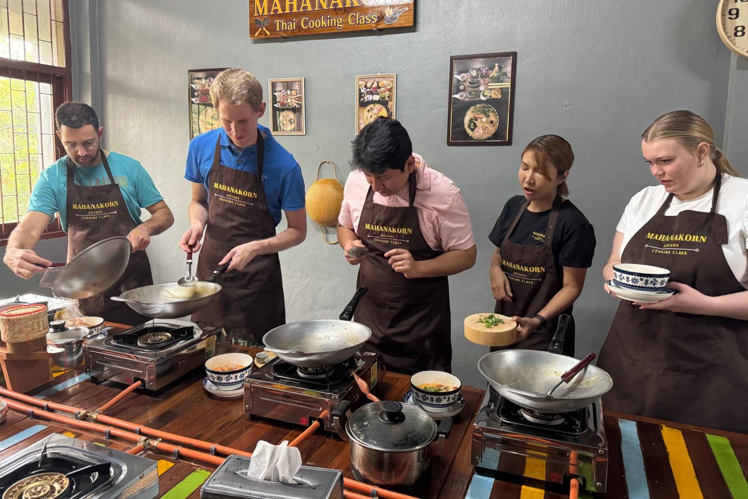 Gå med i en matlagningskurs i Bangkok och lär dig att skapa autentiska thailändska rätter med färska, lokala ingredienser. Börja på Mahanakorn Thai matlagningskurs, där du får en introduktion till de unika kryddorna och smakerna i det thailändska köket. Få praktisk erfarenhet av att laga traditionella recept under ledning av en lokal kock. Från curryrätter till wokrätter får du lära dig tekniker som framhäver Thailands livfulla och djärva smaker. Slutligen sätter ni er ner tillsammans för att njuta av den utsökta måltid ni har tillagat. Oavsett om du är nybörjare eller matentusiast erbjuder denna klass en rolig, kulturell upplevelse som ger dig nya färdigheter och en djupare uppskattning för thailändsk matlagning.Includes
