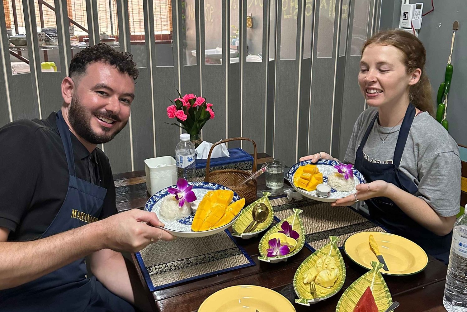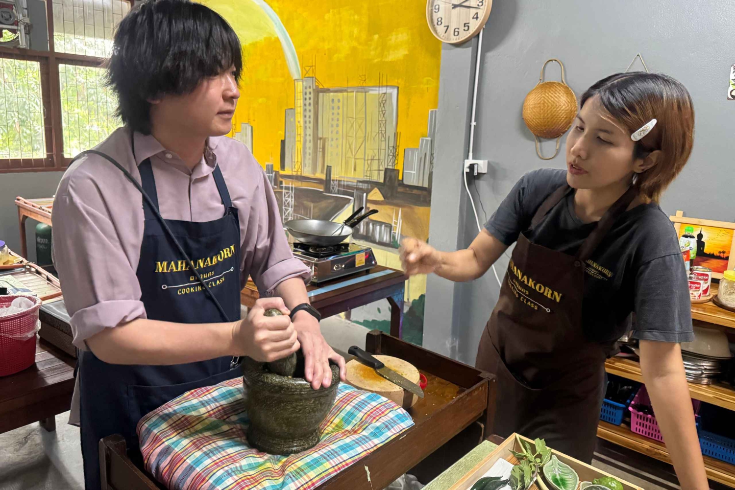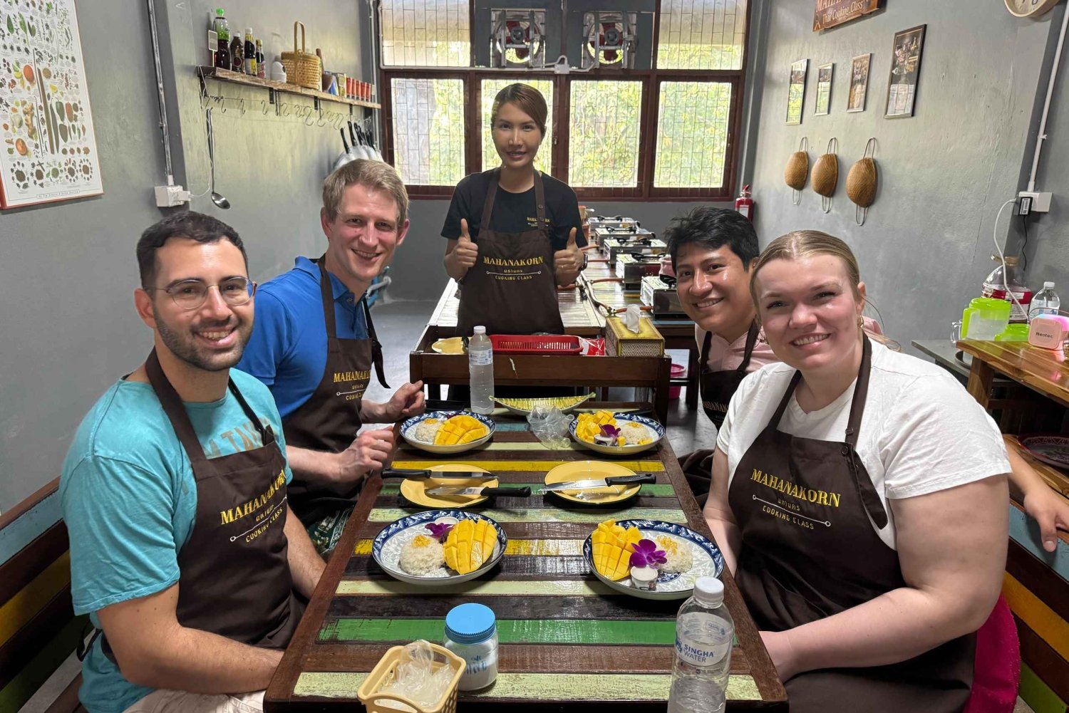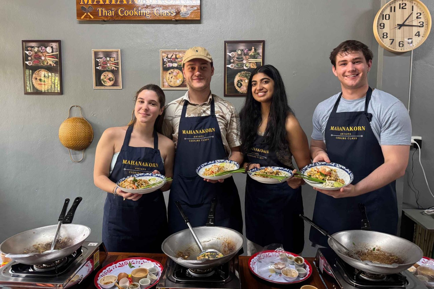 Gå med i en matlagningskurs i Bangkok och lär dig att skapa autentiska thailändska rätter med färska, lokala ingredienser. Börja på Mahanakorn Thai matlagningskurs, där du får en introduktion till de unika kryddorna och smakerna i det thailändska köket. Få praktisk erfarenhet av att laga traditionella recept under ledning av en lokal kock. Från curryrätter till wokrätter får du lära dig tekniker som framhäver Thailands livfulla och djärva smaker. Slutligen sätter ni er ner tillsammans för att njuta av den utsökta måltid ni har tillagat. Oavsett om du är nybörjare eller matentusiast erbjuder denna klass en rolig, kulturell upplevelse som ger dig nya färdigheter och en djupare uppskattning för thailändsk matlagning.Includes