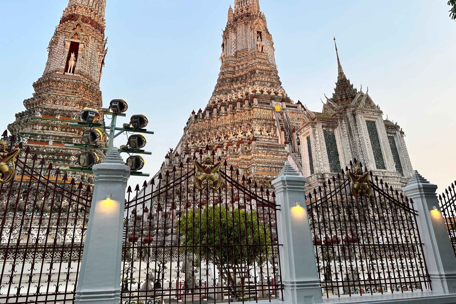 Vi ger oss ut på en spännande sightseeingresa genom att gå ombord på en färja nära mötesplatsen för att utforska 'Gryningens tempel' från utsidan. Hoppa på ett traditionellt Tuk Tuk-fordon som körs av våra vänliga chaufförer och besök Bangkoks mest ikoniska tempel och palats efter solnedgången för ett förtrollande sightseeingäventyr. Vi stannar till och utforskar den livliga gobelängen på Bangkoks största blomstermarknad (Pak Klong Talad), där ett stort utbud av naturens skönhet blomstrar och du kan njuta av blommornas doftande skönhet genom att lära dig att vika lotusblomman. Utforska den inre smutsiga passagen på marknaden. Slutligen kommer du att få prova en utsökt måltid och efterrätt för att tillfredsställa dina begär med en utsökt fest i hjärtat av Chinatown, en kulinarisk himmel där du kan smaka på en mängd läckra rätter som får munnen att vattnas och som kommer att tända dina smaklökar och lämna dig sugen på mer.Includes