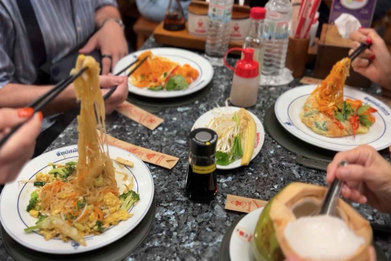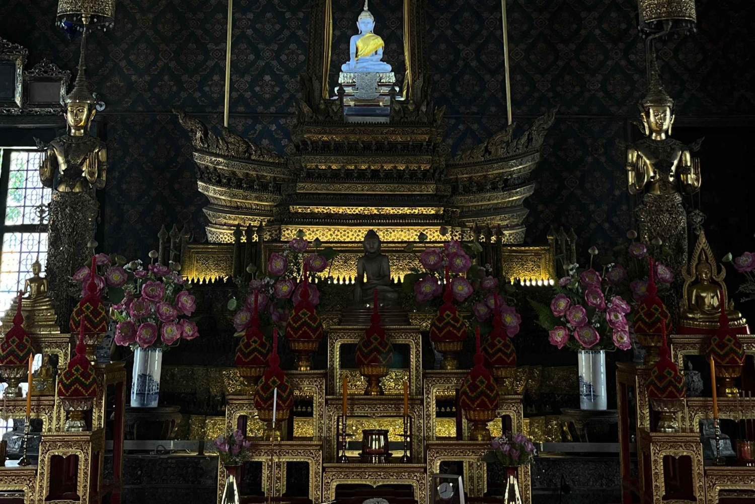 Börja ditt äventyr med en tuk-tuk-tur genom Bangkoks livliga gator. Smaka på det bästa av det thailändska köket på tre kända Michelin-listade restauranger. Njut av ikoniska rätter som Pad Thai, kryddiga sallader, mustiga curryrätter och roliga aptitretare i miniformat. Avsluta med en söt ton med mango sticky rice och en mystisk lokal plats som rekommenderas av MagicalTrip. Kliv in i den fridfulla parken Wat Thepthidaram, en fantastisk tempelbyggnad som byggdes av en kung för hans dotter. Beundra dess eleganta arkitektur och kungliga charm, och utforska sedan det fridfulla samhället vid kanalen i närheten. Medan du vandrar omkring kan du njuta av det lugna livet i gamla Bangkok – trähus, tysta gångvägar och dold skönhet runt varje hörn. Avsluta ditt sinnliga äventyr med en långsam promenad genom skuggiga gränder som en gång användes som stadens livsnerver. Känn dofterna från gamla Bangkoks kök, lyssna på ljudet av vardagslivet och se en sida av staden som de flesta turister missar. Denna uppslukande rutt förenar dig med Bangkoks själ – dess historia, människor och levande traditioner.Includes