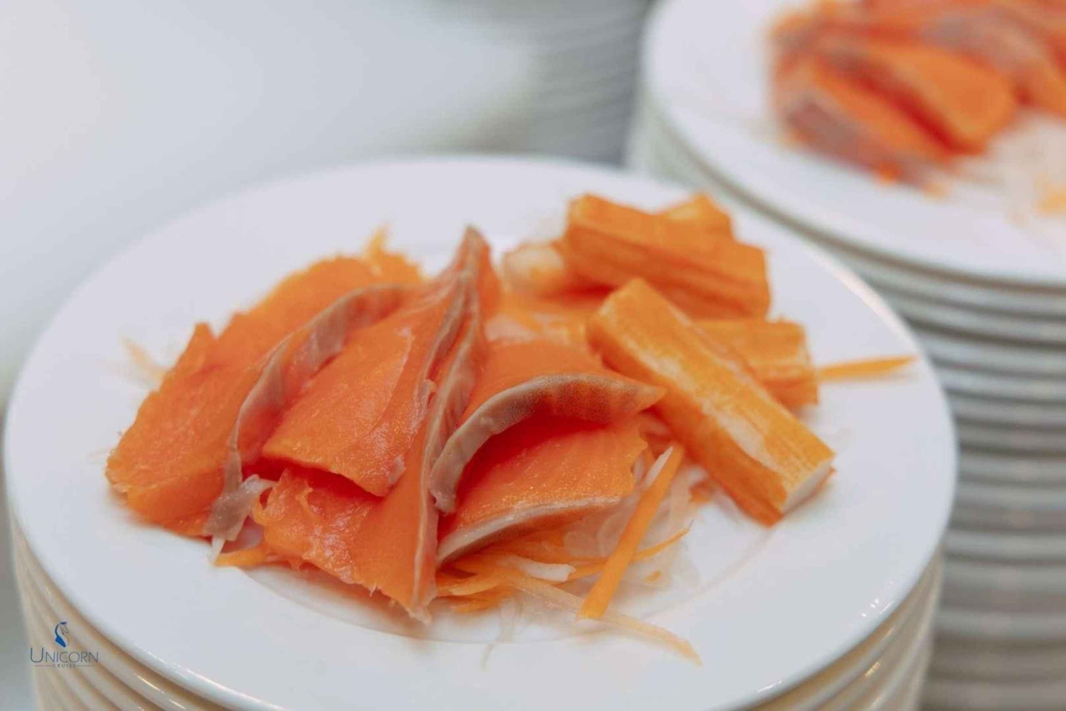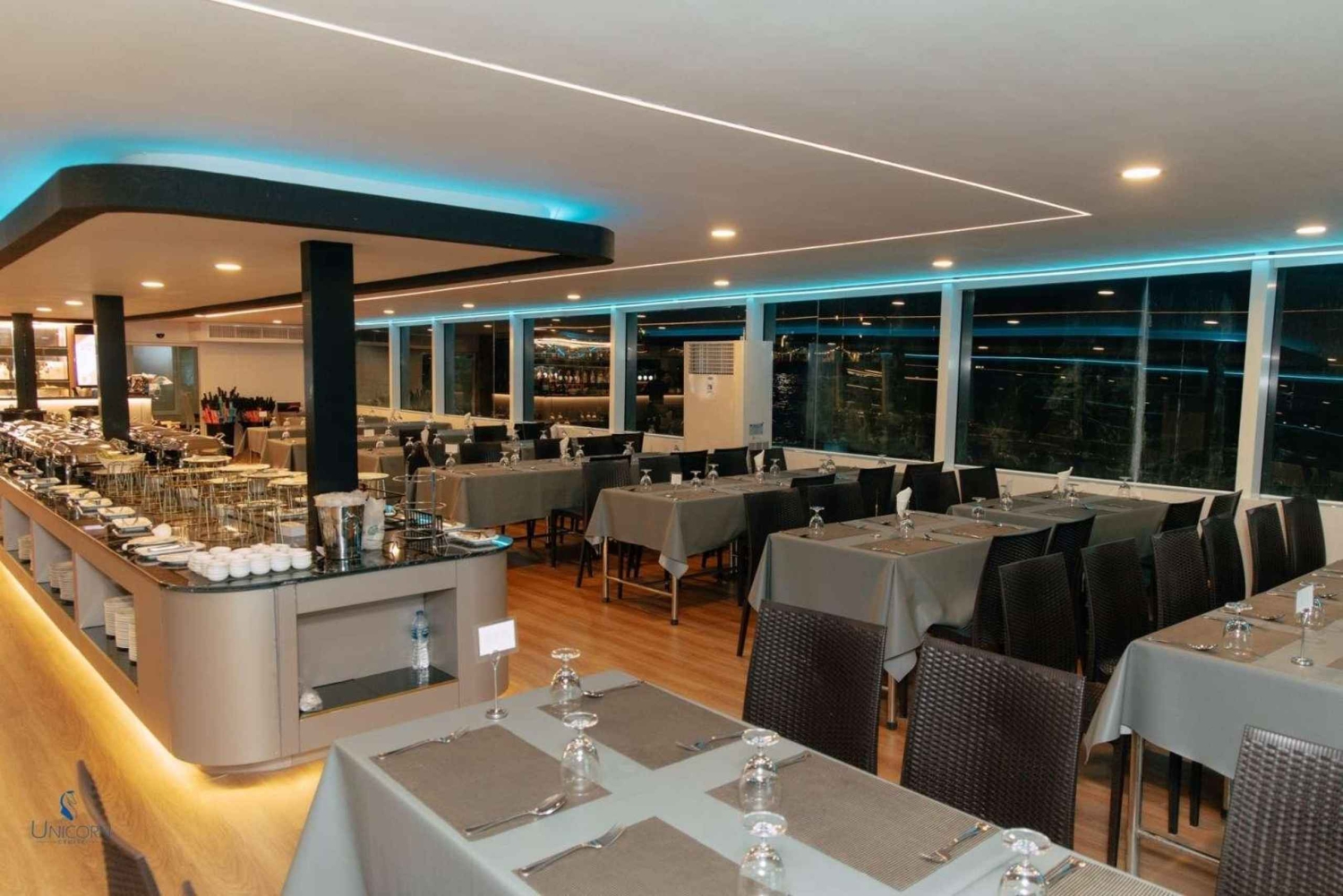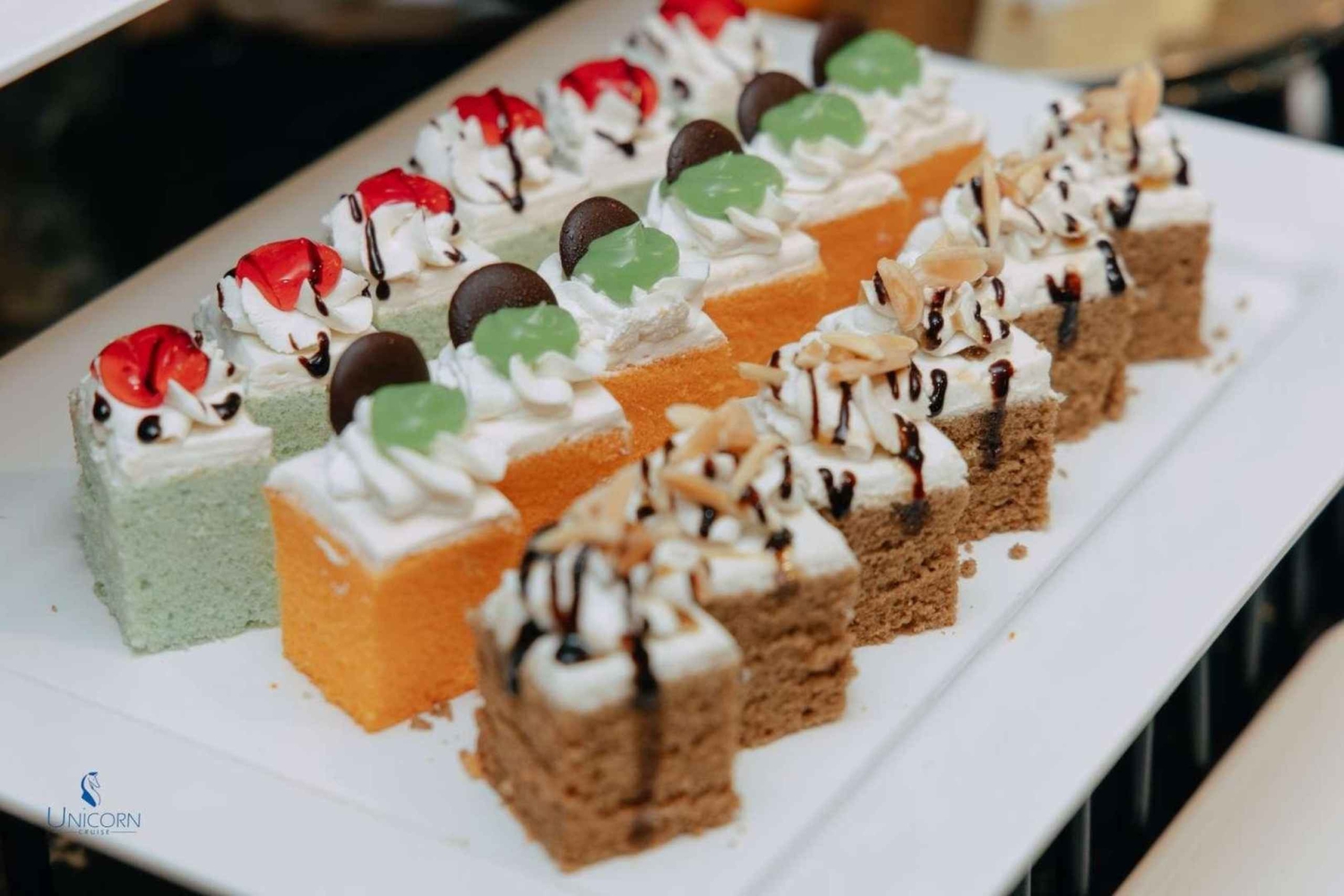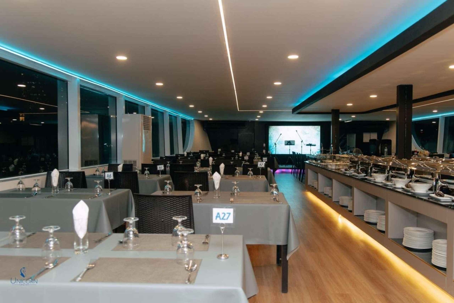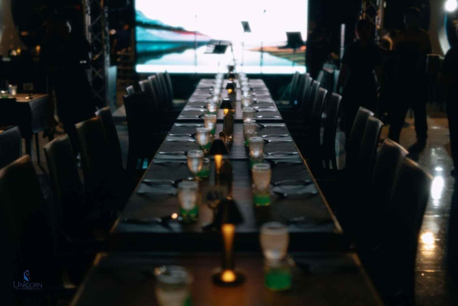 Kliv ombord på Unicorn Cruise för en fascinerande kväll på Bangkoks Chao Phraya River. Börja kvällen med ett varmt välkomnande på ICONSIAM Pier och sätt sedan segel förbi Bangkoks mest ikoniska landmärken, alla vackert upplysta under kvällshimlen - från den majestätiska Wat Arun till det historiska Grand Palace. Njut av en överdådig internationell skaldjursbuffé med flodräkor, chilenska musslor och en härlig lax-sashimi-station, allt medan ett liveband fyller luften med musik som kompletterar den fantastiska utsikten. Denna kryssning är perfekt för familjer, par, soloäventyrare och grupper och erbjuder en oförglömlig blandning av middagar, sightseeing och underhållning, vilket gör den till ett måste för att uppleva Bangkoks magi från vattnet.Includes