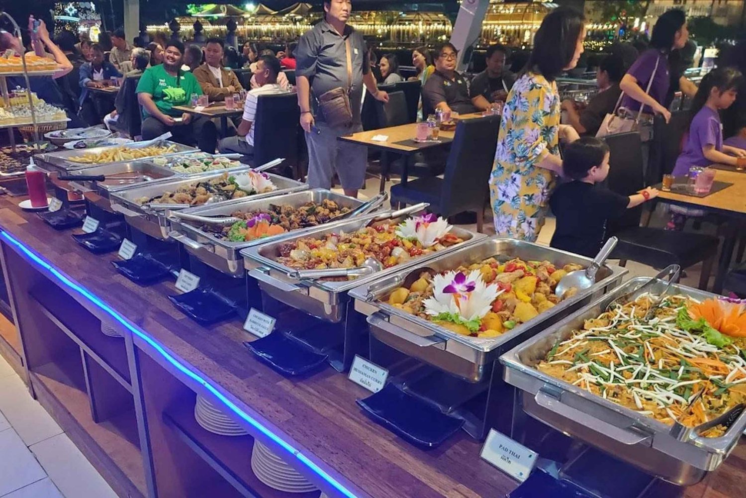 Välkomstdrink (kaffe, te, vatten) Internationell buffé med fisk och skaldjur Liveunderhållning (klassisk thailändsk dans och musik) Kryssning längs floden Chao PhrayaImportant Information