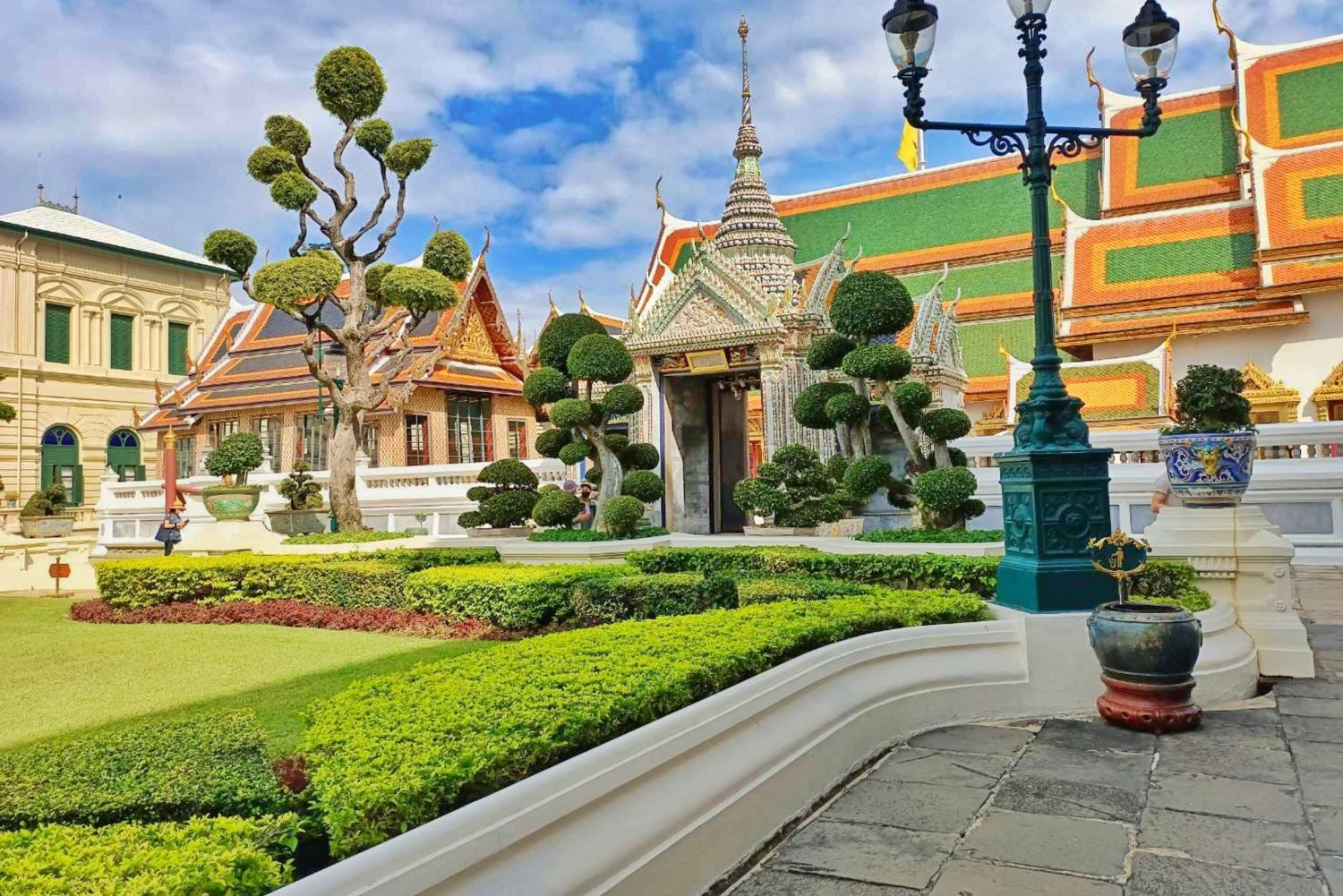 Tillbringa en dag med att upptäcka några av de bästa marknaderna och templen som Bangkok har att erbjuda. Njut av en kombination av lokal kultur, sightseeing och matprovningar. Först besöker du Maeklong Railway Market. Marknaden kallas 'Talat Rom Hup', vilket betyder ungefär 'paraplymarknad', och du får se hur försäljarna kämpar för att packa ihop sina stånd när ett tåg passerar längs spåret som går genom marknaden. Utforska och se förhoppningsvis tåget passera innan du beger dig till nästa stopp, Damnoen Saduak Floating Market. Upptäck en av de mer berömda flytande marknaderna i staden, som består av ett nätverk av smala kanaler med försäljare som paddlar sina båtar fyllda med varor. Här finns allt från lokala produkter till souvenirer och du kan njuta av det organiserade kaoset på floden innan du stannar för lunch på en lokal restaurang, på egen bekostnad. Efter att ha ätit en mängd goda thailändska rätter beger du dig till Wat Phra Kaew, även känt som Smaragdbuddhans tempel, som är ett av landets heligaste tempel. Ta in den lugna och andliga miljön innan du beger dig till Grand Palace. Förundras över den utsökta arkitekturen och de många bilderna här, en gång hem för den thailändska kungafamiljen fram till början av 1900-talet. Njut av ett sätt att utforska med låg miljöpåverkan. På den här resan utforskar du hållbara upplevelser som prioriterar att tillhandahålla vatten i glasflaskor och kompensera för koldioxidutsläpp under varje resa, vilket minskar din miljöpåverkan och ditt koldioxidavtryck.Includes