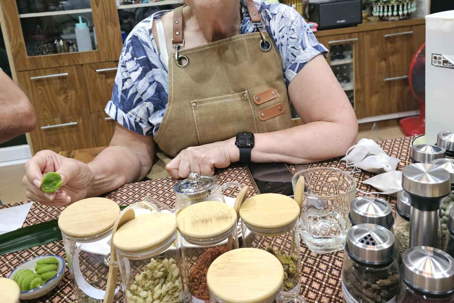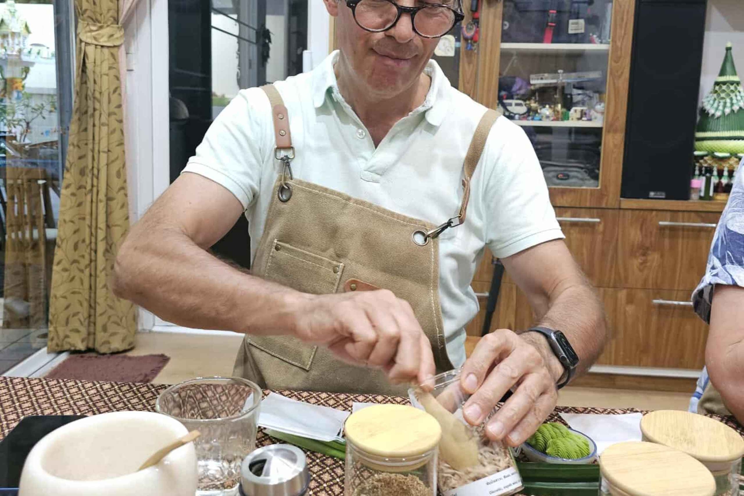 Fördjupa dig i en värld av thailändska örter, kryddor och hälsotraditioner under denna unika halvdags matupplevelse. Till skillnad från vanliga matlagningskurser fokuserar det här programmet på den autentiska användningen av färska thailändska örter – inte bara för smaken utan också för deras helande egenskaper. Din resa börjar med en guidad marknadspromenad, där du utforskar lokala stånd fyllda med aromatiska örter, exotiska grönsaker och säsongens frukter. Lär dig hur thailändare väljer och använder färska ingredienser i vardagen, med insikter om deras medicinska värden. Tillbaka i vårt välkomnande matlagningsskola kavlade du upp ärmarna för en praktisk matlagningskurs. Laga 4 autentiska thailändska rätter och 1 traditionell dessert, var och en med den unika rollen som örter spelar i det thailändska köket som höjdpunkt. Du lär dig också att balansera din måltid med thailändska hälsoprinciper och upptäcka hur örter förbinder kropp, smak och sinne. När dina rätter är klara, sätt dig ner och njut av måltiden du har lagat i en varm, familjeatmosfär – dela berättelser, leenden och glädjen med thailändsk matlagning. Den här upplevelsen kombinerar kultur, välbefinnande och autentiska thailändska smaker – perfekt för resenärer som söker mer än bara en matlagningskurs. Deltagarna kan välja att förlänga sin upplevelse med en personlig thailändsk örtte-lektion, där du upptäcker ditt unika kroppselement och skapar din egen örtblandning under ledning av en thailändsk wellness-expert. (Ytterligare avgift tillkommer.) I slutet av lektionen återvänder du till MRT Huai Khwang med nya recept, nya vänner och en minnesvärd smak av thailändsk gästfrihet.Includes